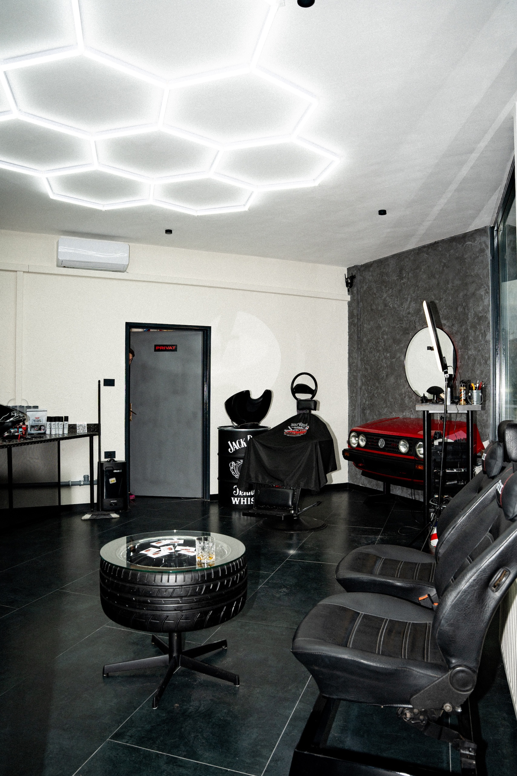 Brivska garaža je sodobna brivnica in frizerski salon s karakterjem, kjer se surov industrijski stil združi z natančnim moškim striženjem in urejanjem brade ter kul garažnim vajbom.